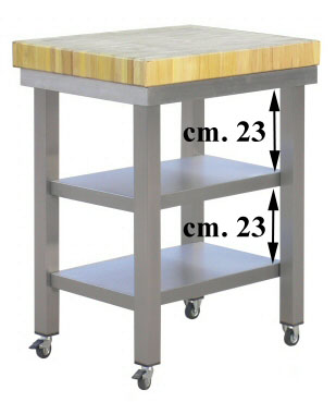 I carrelli inox Spagnoli sono prodotti esclusivamente con un acciao inox finemente satinato. Il carrello dispone di un "piano ceppo" di spessore cm. 7, 2 ripiani di appoggio, di 2 ruote fisse e 2 girevoli col il freno. Su richiesta è possibile personalizzare l'altezza fra i 2 ripiani inox.Il carrello viene spedito montato e imballato su un pallet.
